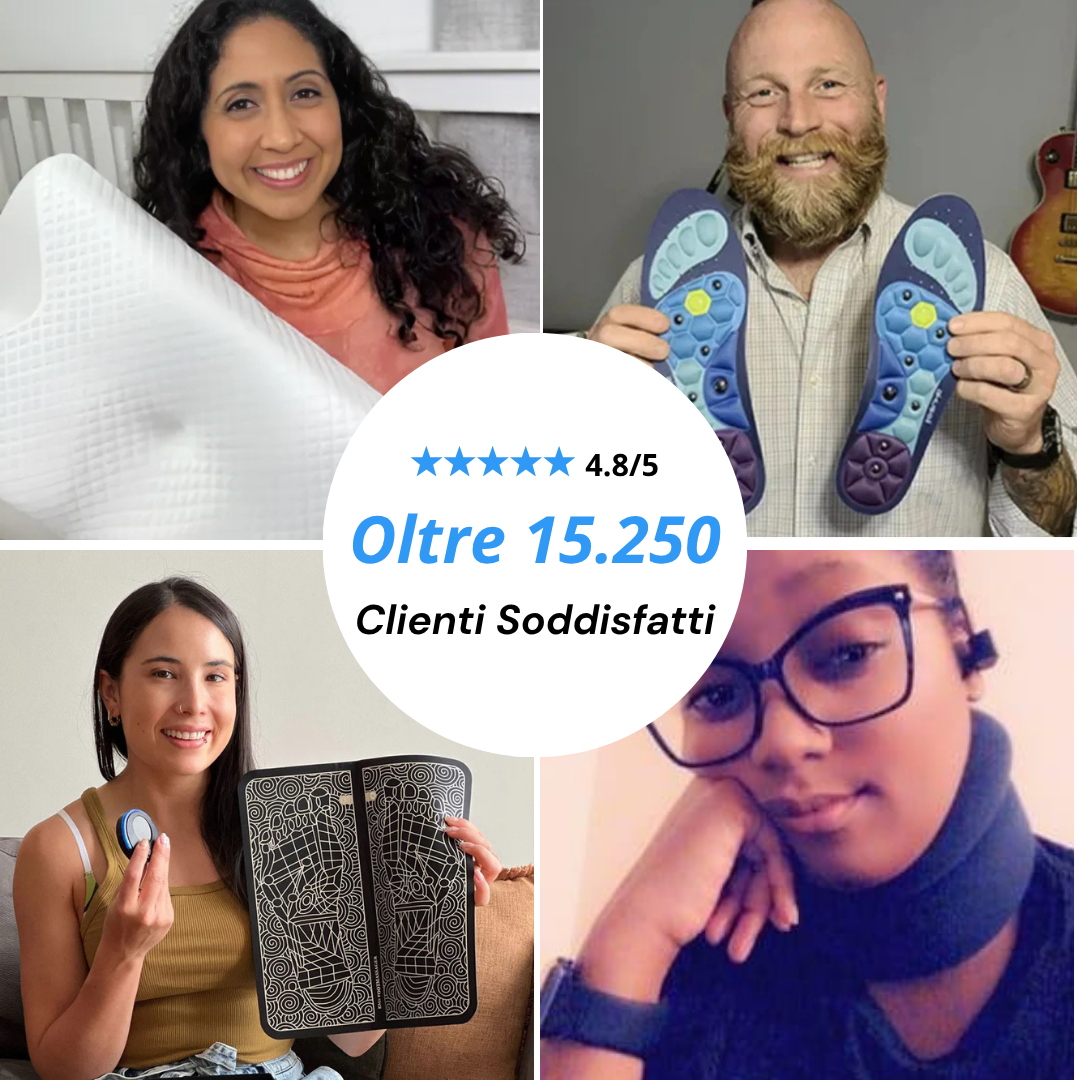 Il Kit Sollievo Totale dei Piedi è una meraviglia. Il tappetino da massaggio EMS è incredibile per la circolazione, e le solette sono comode tutto il giorno. Le mie gambe sono molto più leggere la sera. Lo adoro!