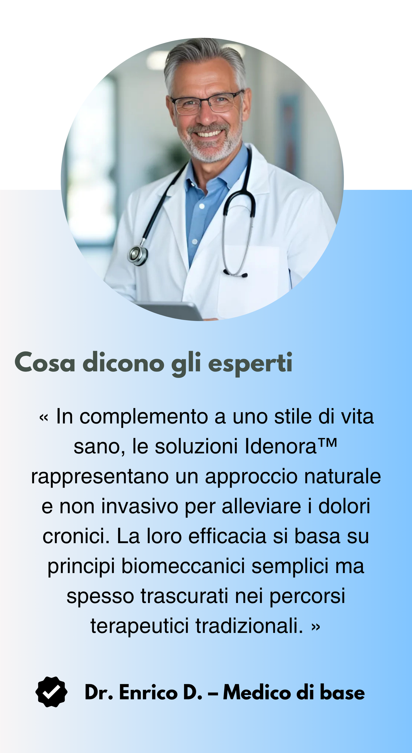 In Idenora crediamo che ognuno meriti una salute ottimale. La nostra passione è trovare soluzioni innovative che migliorino il vostro comfort e rafforzino la vostra fiducia. Qualunque sia la vostra età, le vostre sfide, la vostra professione o attività sportiva – i nostri dispositivi vi accompagnano ogni giorno, senza dolore, verso una vita più serena e appagante.