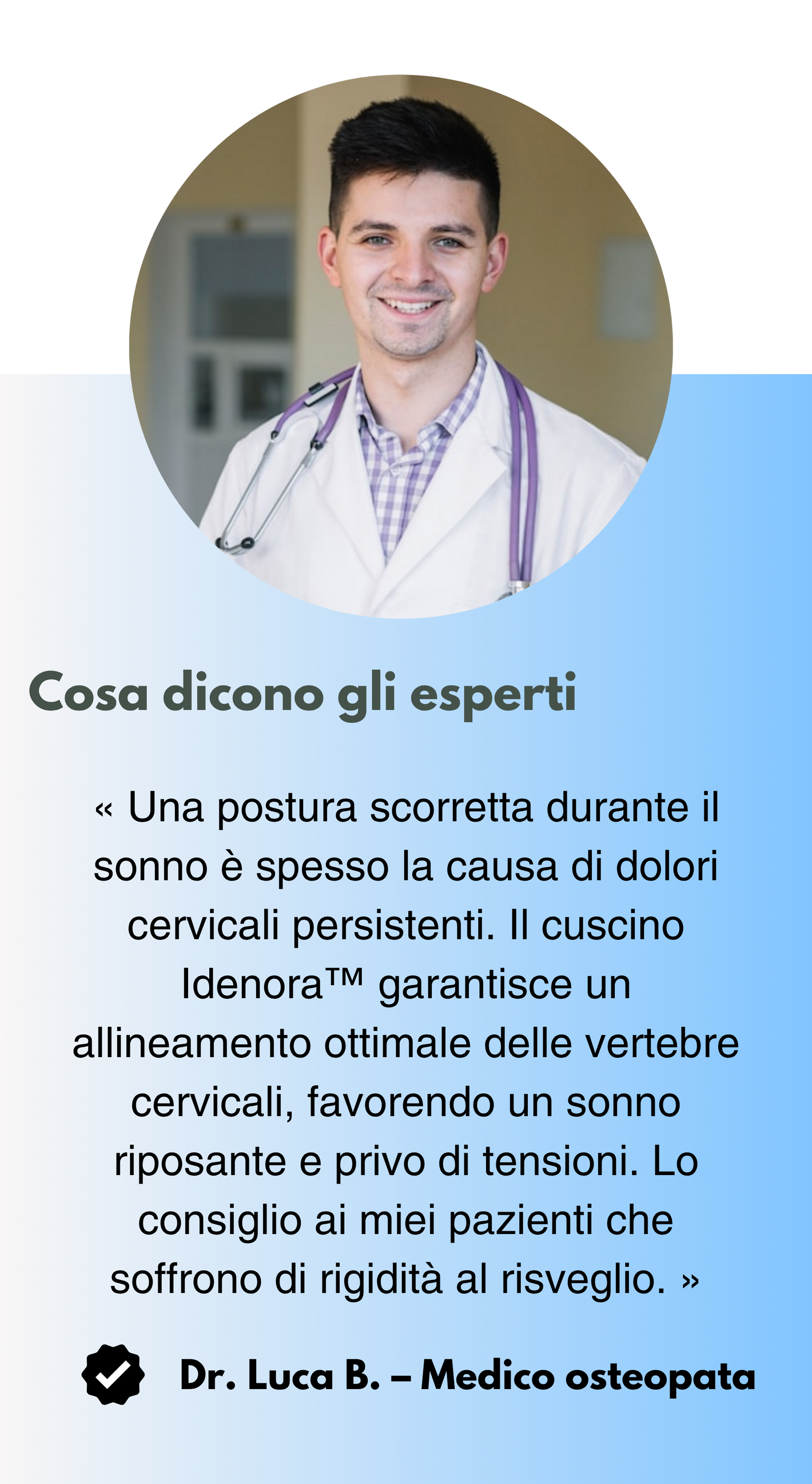 Oltre 15.250 persone sollevate grazie alle nostre soluzioni naturali. Scopri come Idenora™ migliora il sonno, allevia i dolori articolari e trasforma il comfort quotidiano, notte dopo notte.